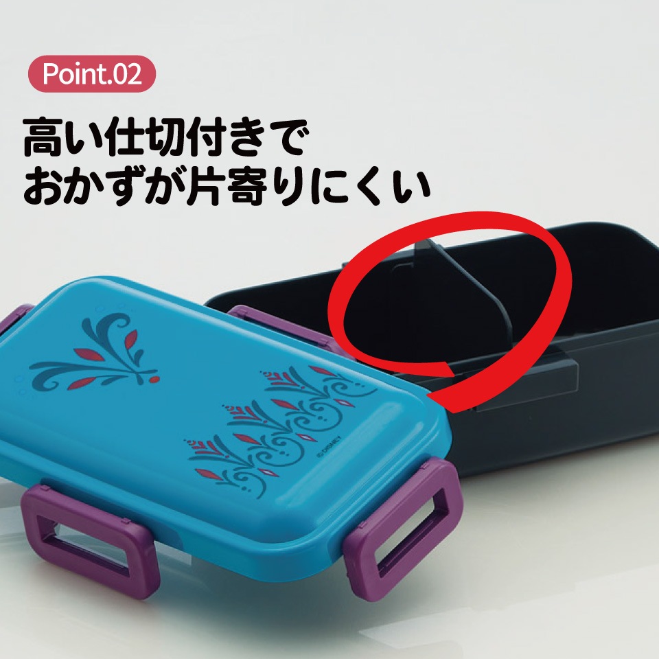 高い仕切付きでおかずが片寄りにくい。