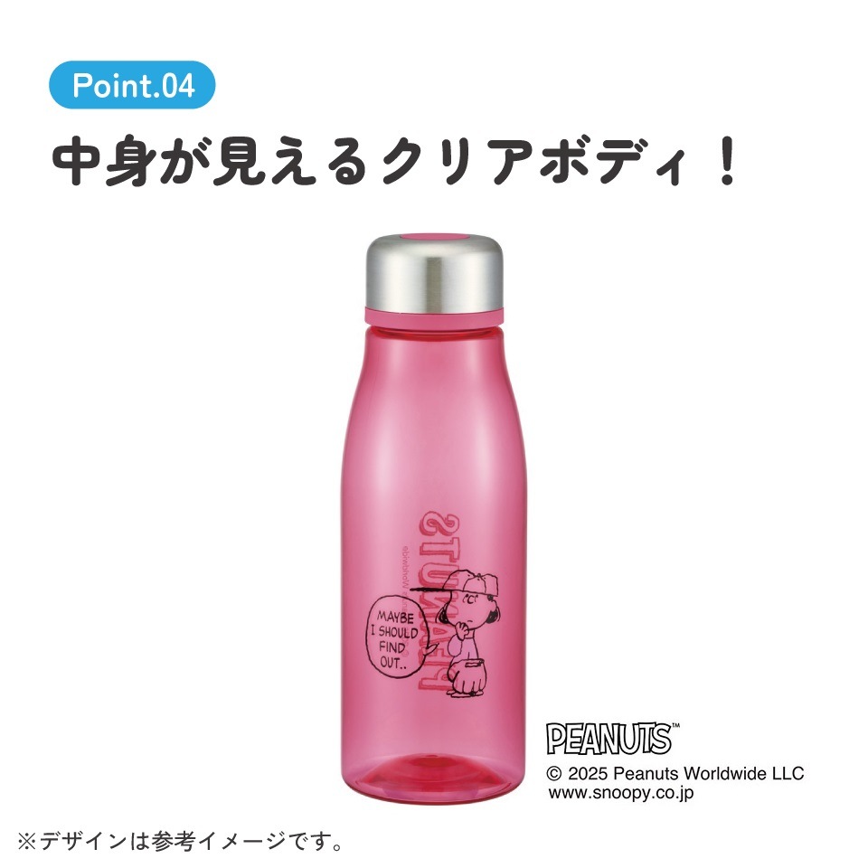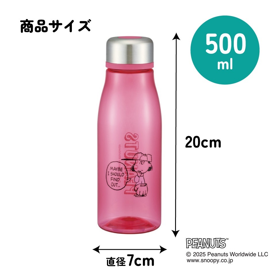 スケーター 水筒 500ml ミニ サイズ プラスチック 大人 直飲み 軽量 かわいい 透明 skater PTY5 ルーシー スヌーピー SNOOPY PEANUTS ピーナッツ【スリム キッズ おしゃれ クリア マイボトル クリアボトル 小さい】