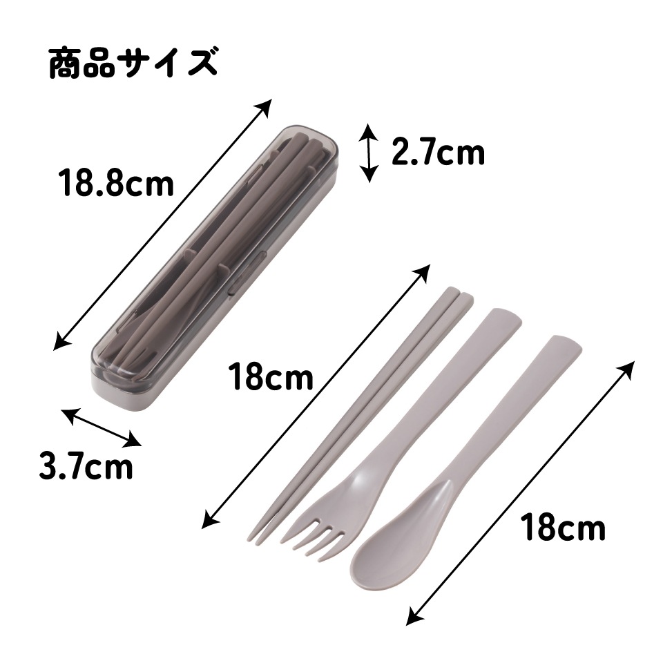 使いやすい18cmのお箸とスプーンとフォークのセットです。