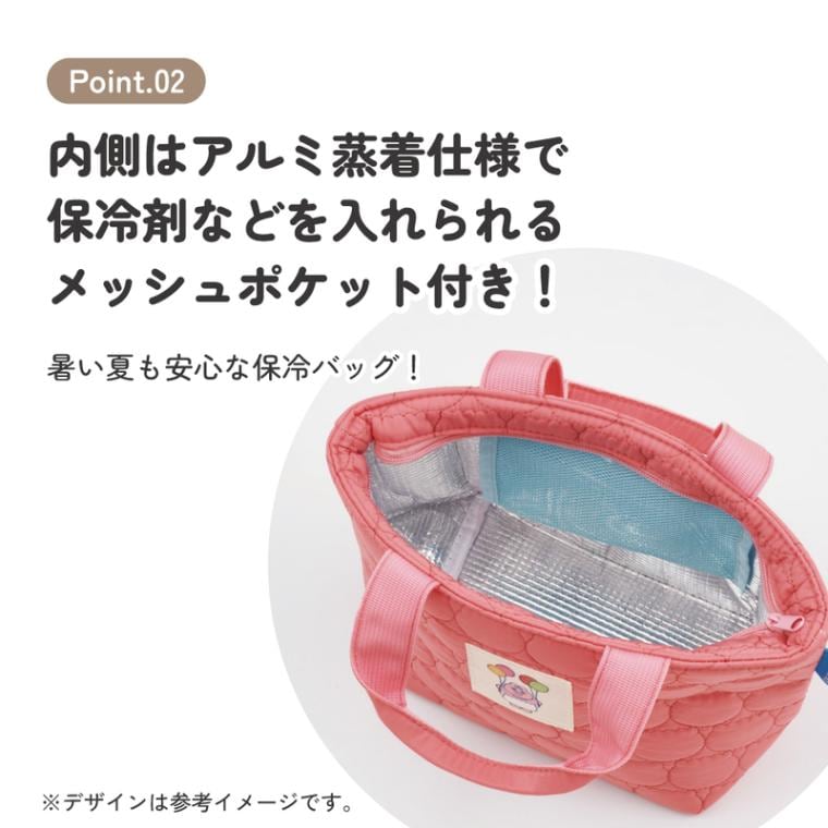 保冷剤などを入れられるメッシュポケット付き。