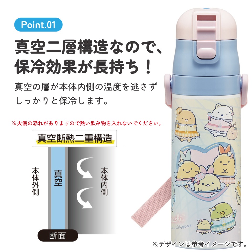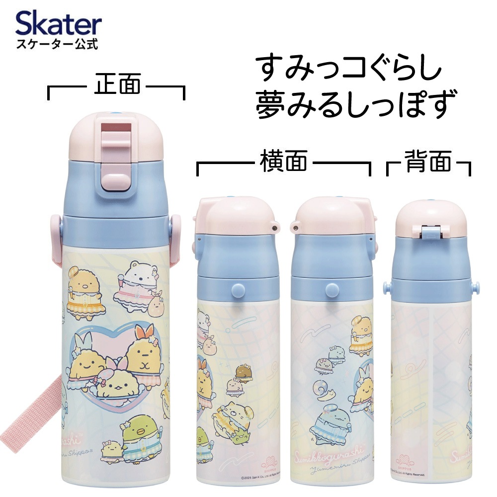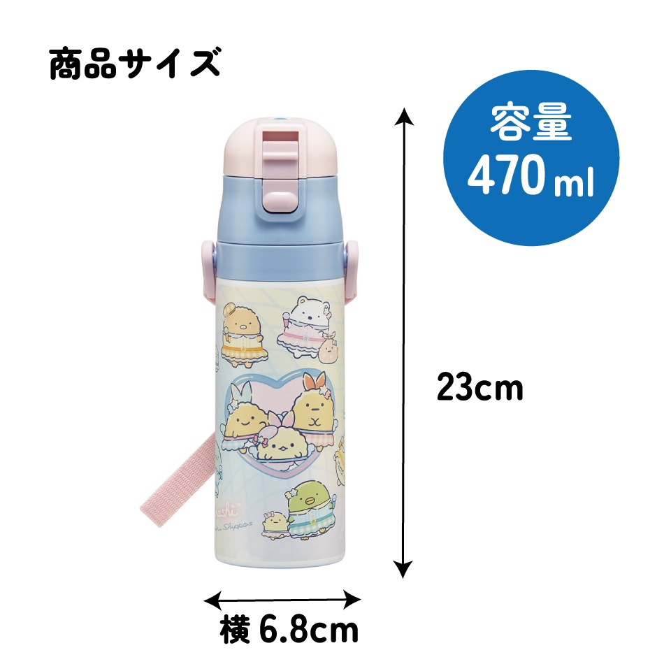 スケーター 水筒 子供 470ml 直飲み ダイレクト キッズ ステンレスボトル skater SDC4 すみっコぐらし 夢みるしっぽず すみっこ ぐらし 女子【幼稚園 キャラクター ワンタッチ こども 保冷 ショルダーベルト付き 子ども】